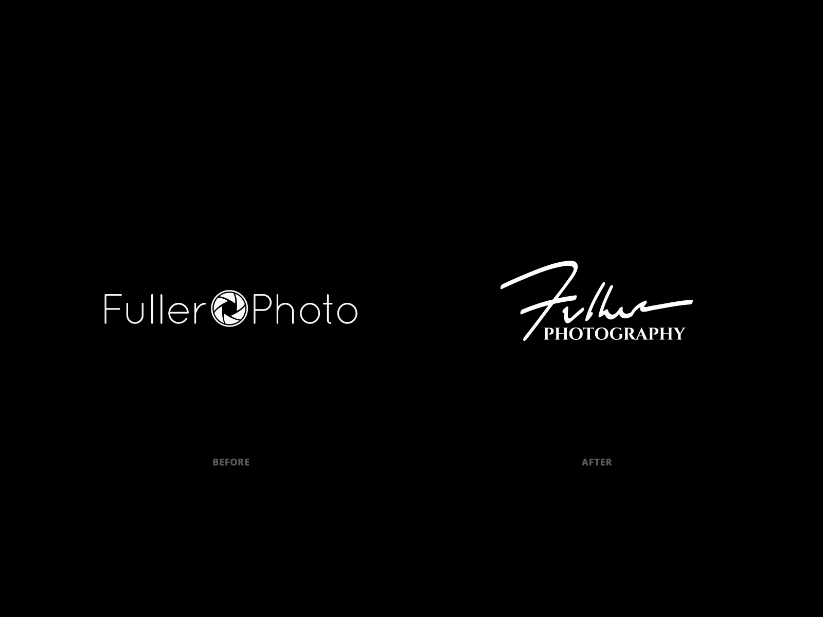 Rebranding for Fuller Photography to move away from the generic shutter design to a more unique form that could be copyrighted and better captured the elegance of the brand.
